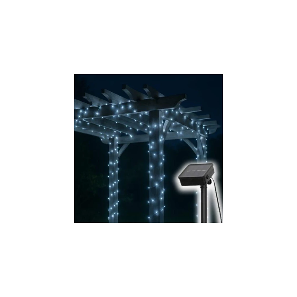 A fényfüzér 200 darab hidegfehér LED-del rendelkezik, amelyek 7 cm-es távolságban helyezkednek el a 14 méter hosszúságú zöld vezetéken. Ez az árnyalat tökéletesen illeszkedik a természetes környezethez, legyen szó bokrokról, kerítésről vagy pergoláról. A 2 méter hosszúságú tápkábel lehetővé teszi a szolár panel optimális elhelyezését a napos területen, így biztosítva a maximális töltést és működést.
